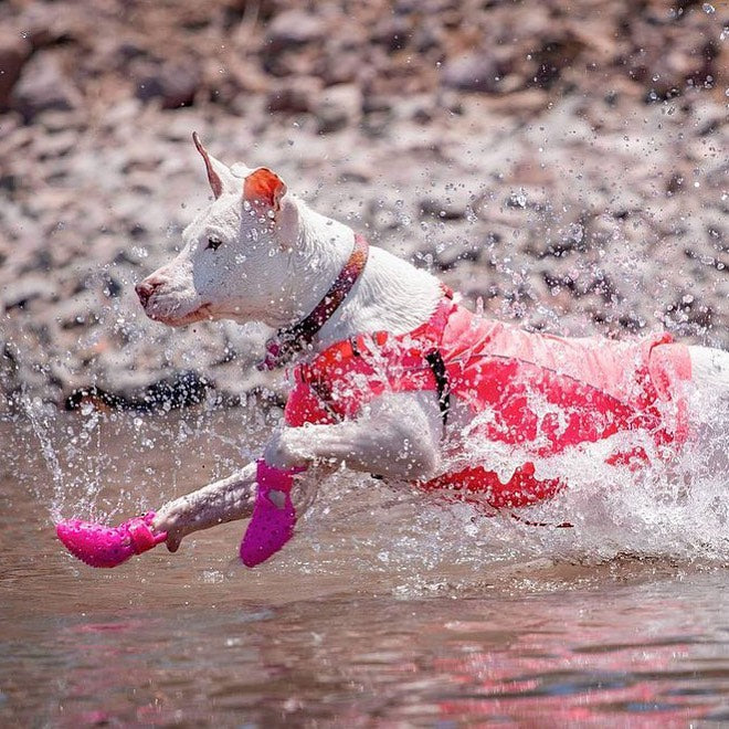 *Getting a dog used to wearing boots is a process. It is very normal to see an amusing high-step in the beginning. This is because they can’t feel the floor and it throws off their coordination, they need time to re-coordinate themselves. It may even take getting them outside and on with the walk before they start to realize that they can in fact walk & run as usual.